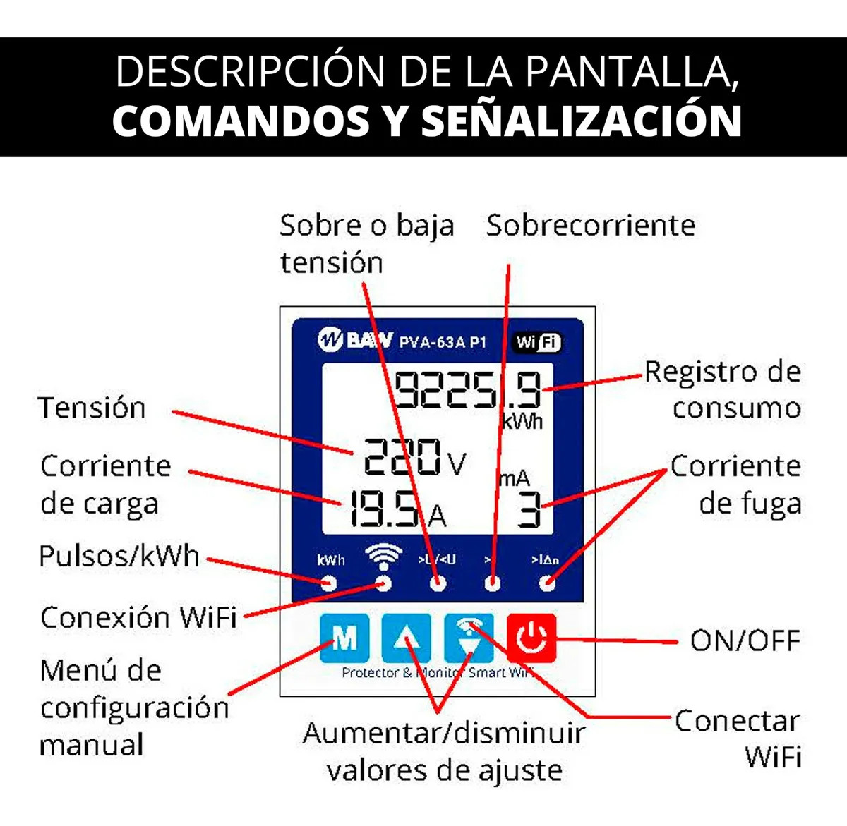Protector Tensión Monofásico 63a Baw Wifi Smart Digital