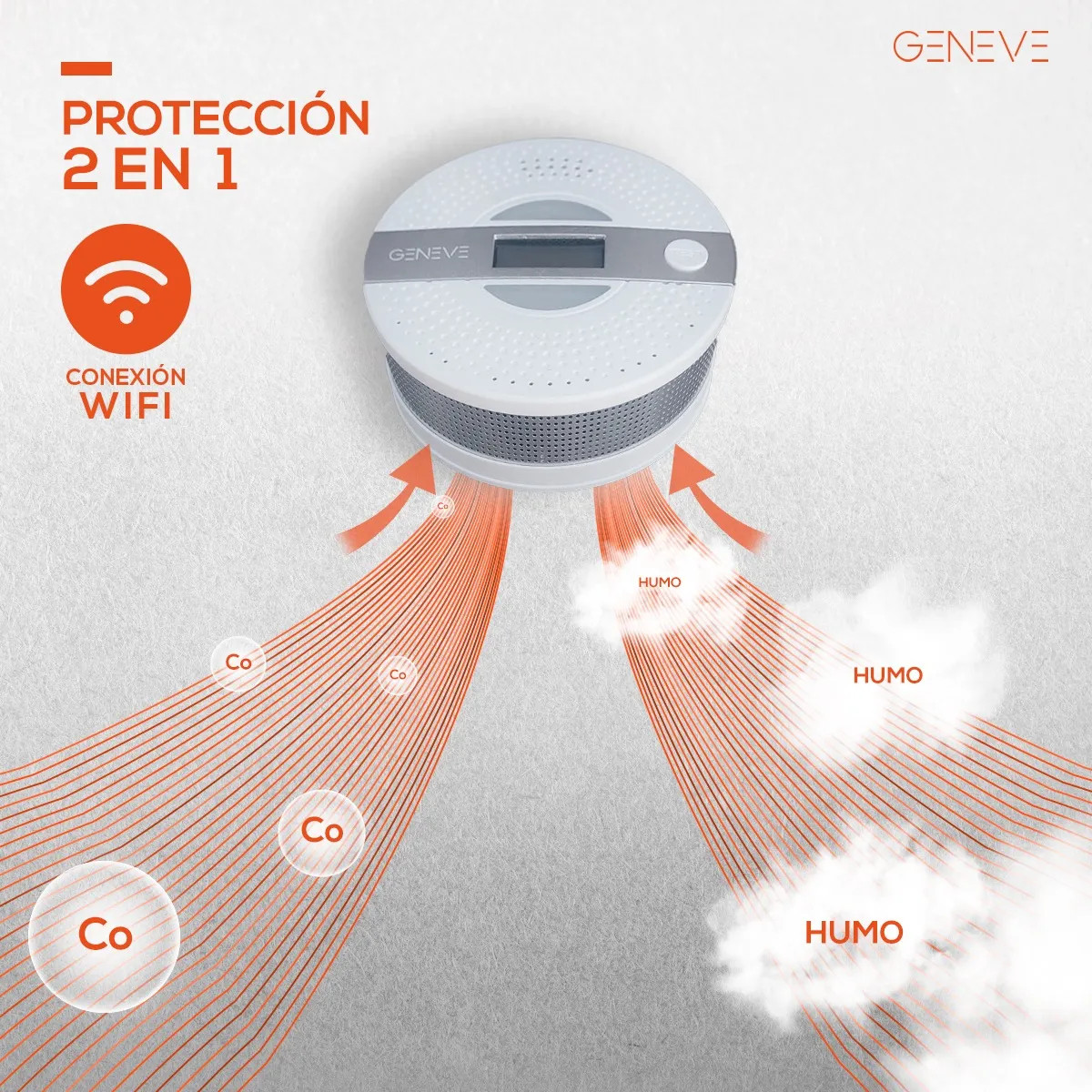 Sensor Detector Dual Monóxido y Humo Wifi Geneve Color Blanco
